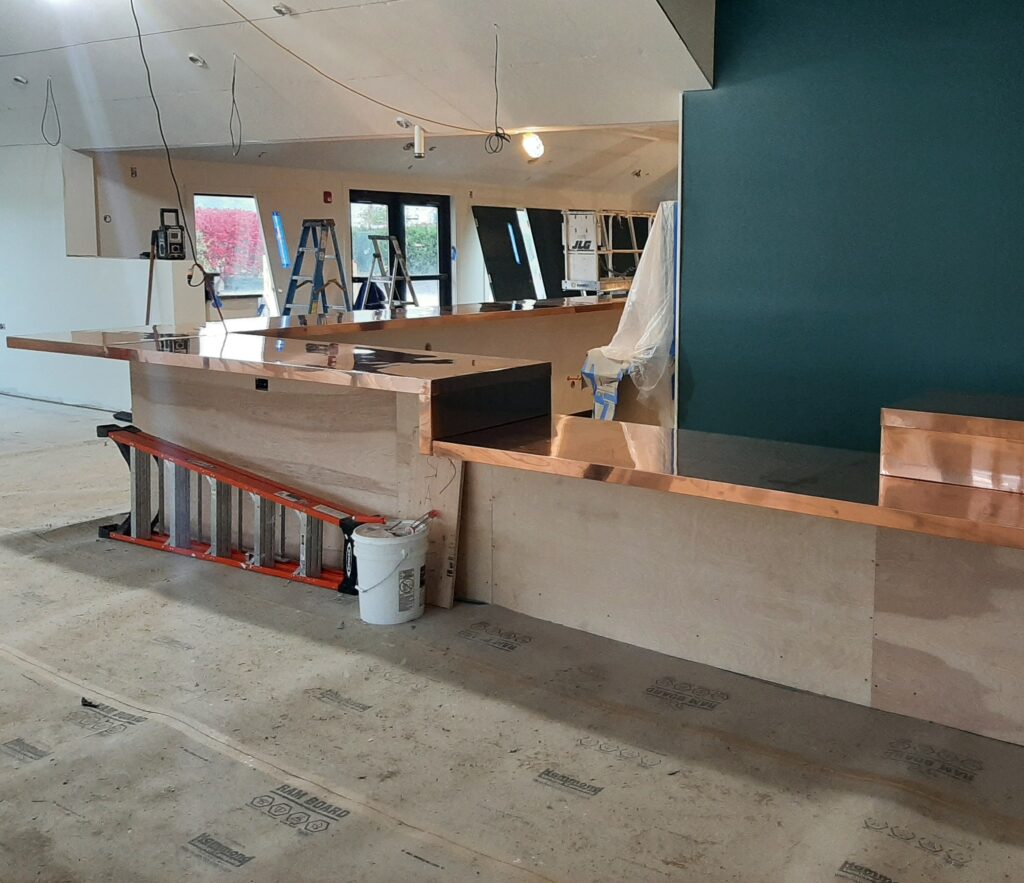 Our team also fabricates and installs custom chimney pans, architectural copper details, and specialized copper bar tops—bringing unique character and functionality to residential and commercial spaces. Every project is tailored to your vision, with a focus on precision, durability, and standout architectural detail.